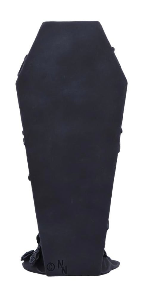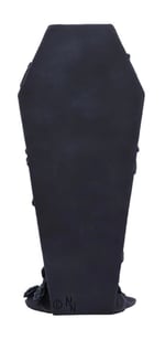 Crafted from high-quality resin and hand-painted, the figurine showcases intricate skeletal details, a textured coffin with black roses lining the interior, and carefully sculpted body language that tells a story of devotion lasting beyond the grave. The compact yet bold design makes it ideal for display in any gothic, romantic, or fantasy setting.