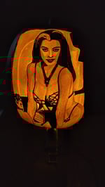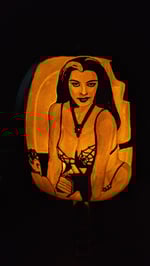 Pin up lily Munster tribute carved on a large tall foam pumpkin standing at 30cm tall and 24cm wide.