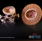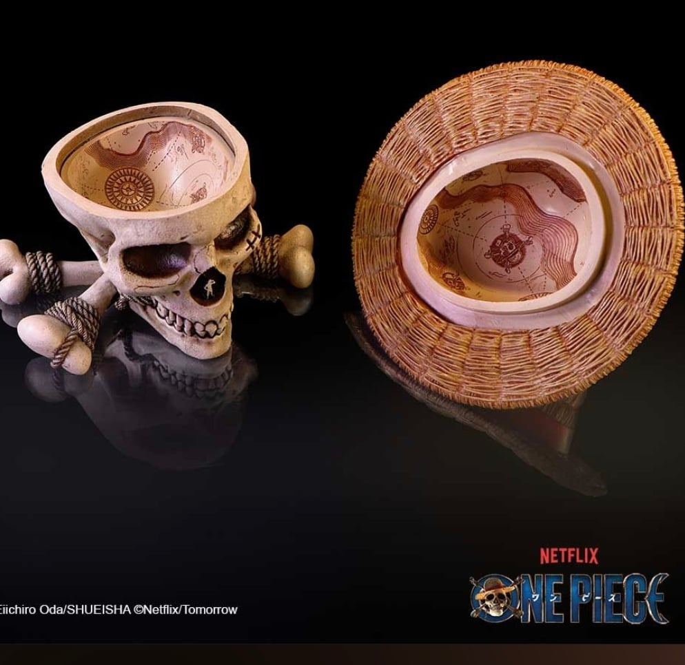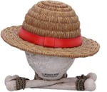 The box is highly detailed and hand-painted, transforming the iconic emblem of Luffy's pirate crew into a seamless 3D sculpture. The lid of the box showcases a beautifully designed version of Luffy's iconic straw hat that lifts to reveal a spacious interior with a highly detailed map printed on the inside. It's perfect for storing small trinkets, jewelry, or as a standalone display