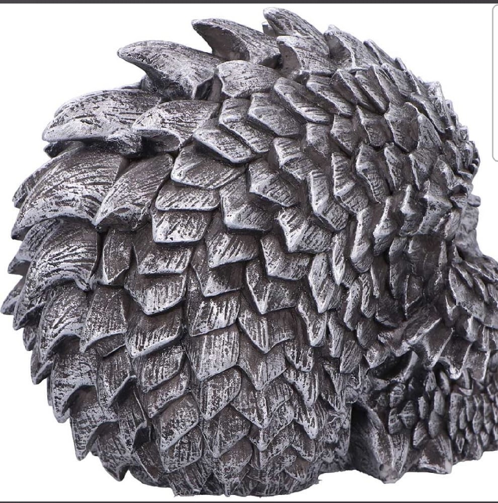 It features intricate, grey, withered scales, giving it a sharp, dragon-like appearance. The weathered texture and detailed design showcase Nemesis Now's high- quality craftsmanship, making it not just a figurine but a striking art piece. The sculptural detail gives it a lifelike, mythical feel, perfect for those who love the darker side of fantasy.